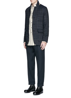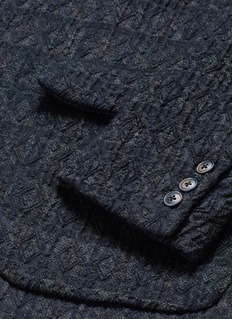 Softening up formal suiting approaches, Uma Wang builds on mastery of textiles in this Tomas jacket. Crafted from navy and brown textured jacquard, this outerpiece is softly structured to carve out a natural silhouette, making it incredibly comfortable for a day's wear.