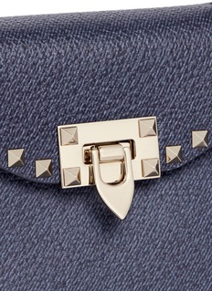 Valentino's Rockstud satchel is given an exquisite update with this pebbled leather version polished in denim effect. Housed in a satchel form and fortified with a studded shoulder strap for a classic look, this holdall is practical with a secure latch-hook closure at the front, and will easily garner attention with cool urban sensibility.