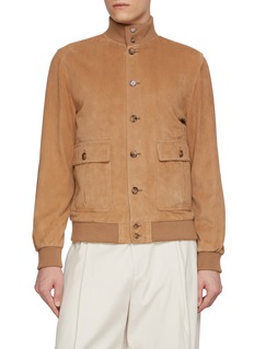 Indulge in the luxurious touch of Valstar's suede jacket in a rich camel hue. This exquisite piece features a high collar and buttoned front, offering a polished and refined appearance. Crafted with meticulous attention to detail, it boasts practical patch pockets and snug ribbed trims for added comfort and warmth.