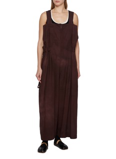 Y’s reimagines workwear through a poetic lens with this oversized cotton jumpsuit. Its utilitarian form softens into fluid pleats and a relaxed drape, while the adjustable side tabs sculpt a subtle waist. A front zip lends functionality, creating a piece that shifts effortlessly from studio to street.